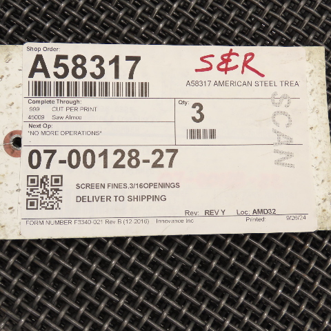 Steel Screen Fines Wire Mesh 26" x 23-1/8" 3/16" Openings 3/32" Thick Lot Of 3