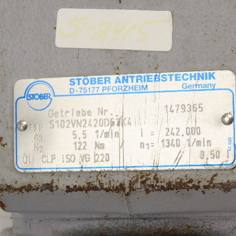 Stober S102VN2420D63K4 242:1 Ratio Right Angle Gear Motor 220/480V 5.5RPM .12kW