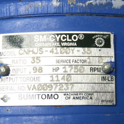 Sumitomo CNHJS-4100Y-35 35:1 Ratio .98Hp 1750RPM Inline Gear Reducer