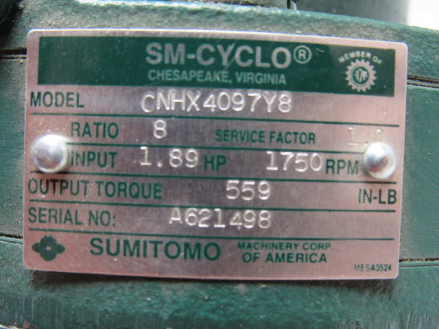 Sumitomo SM-Cyclo CNHX4097Y8 Inline Gear Reducer 8:1 Ratio 1.89 Hp 1750RPM