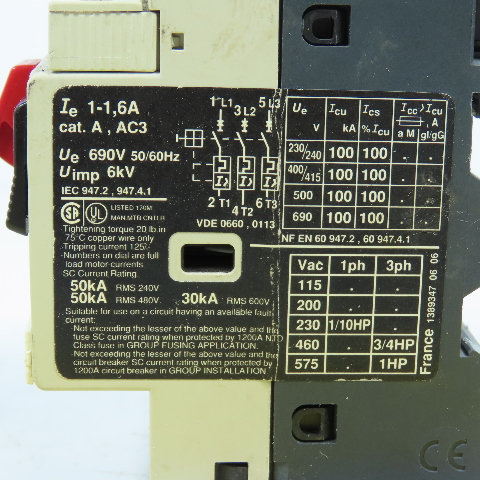 Telemecanique GV2-M06 1-1.6A Motor Circuit Breaker Protector 1HP Max 690V Lot/2