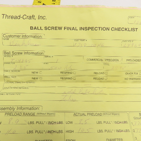 Thread Craft 1268-02H6 2-1/2" OD Single Start 1/2" Lead Ball Screw RH 2-1/2" OAL
