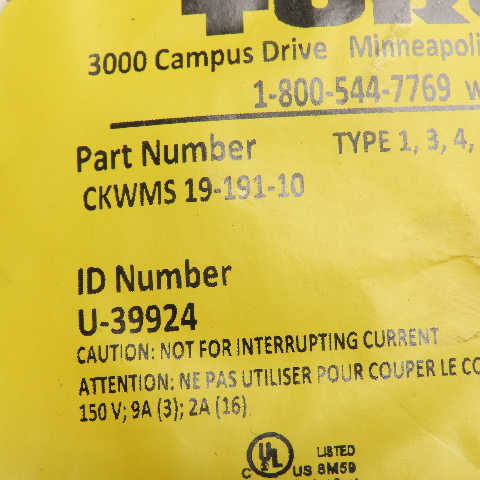 Turck CKWMS 19-191-10 19-Pin Right Angle Female Connector Cordset Cable 150V 10m