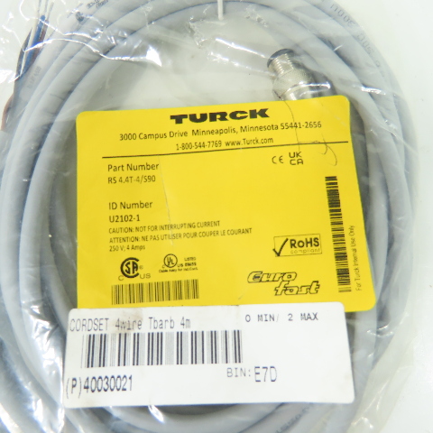 Turck RS 4.4T-4/S90 4-Wire Eurofast Cordset Cable 4m 250V 4A U2102-1 NEW
