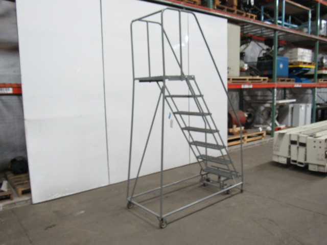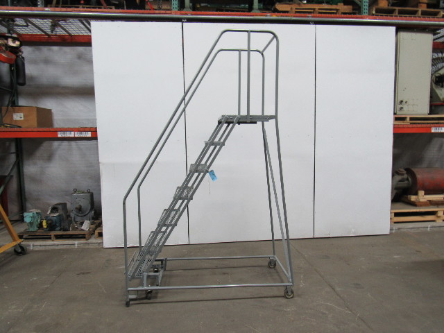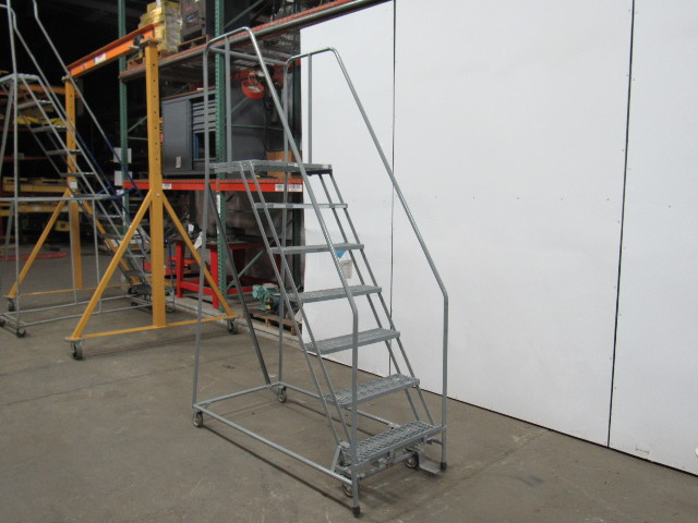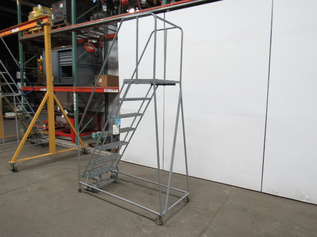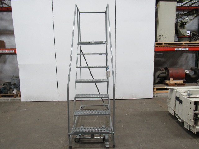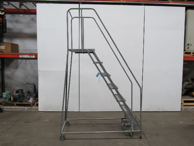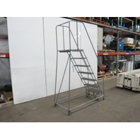U-LINE 7 STEP Steel Rolling Warehouse Ladder 70" Work Ht. 450 LB Max
