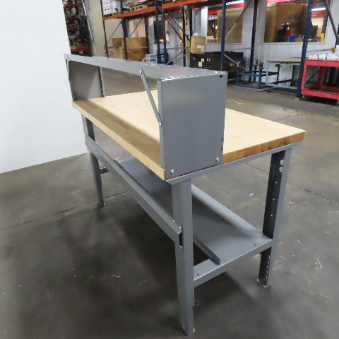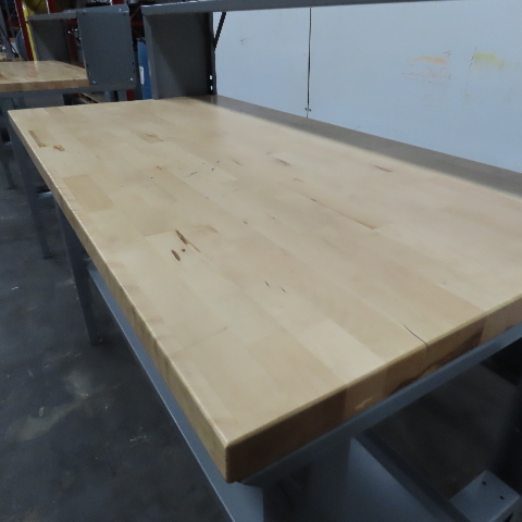 - Uline industrial workbench with butcher block top