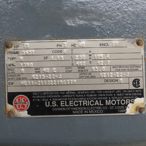 - U.S. Electrical Motors 75HP AC Motor