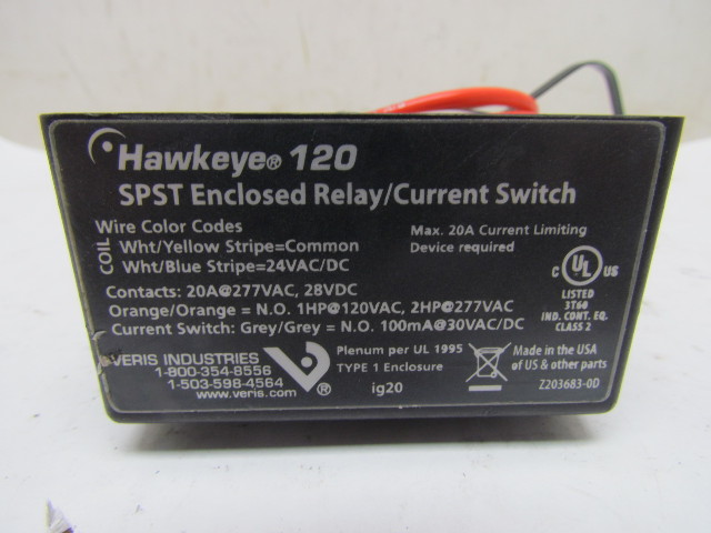 Veris H120 SPST Enclosed Relay/Current Switch 20Amp 277VAC