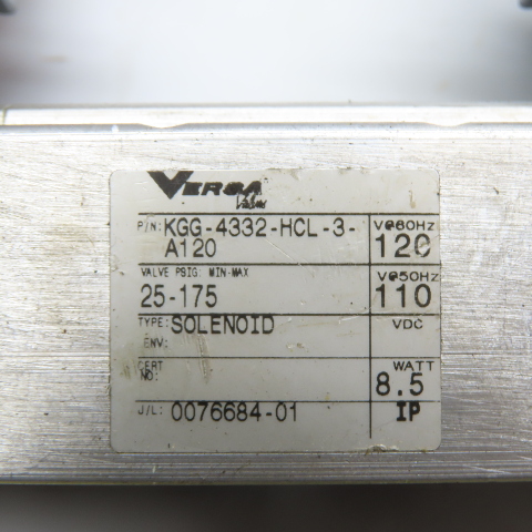 Versa KGG-4332-HCL-3-A120 Solenoid Valve 120V 60Hz 110V 50Hz 8.5W 25-175 PSI