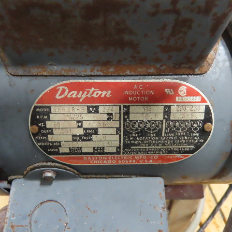 - Dayton 3/4HP A.C. induction motor