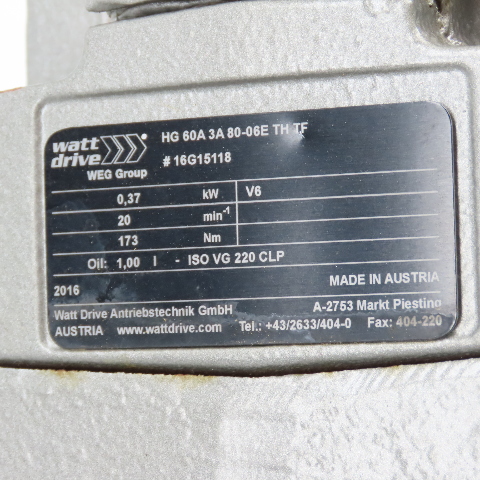 Watt HG 60A 3A 80-06E TH TF 0.5HP Inline Gear Motor 20RPM 173Nm 230/460V 3Ph