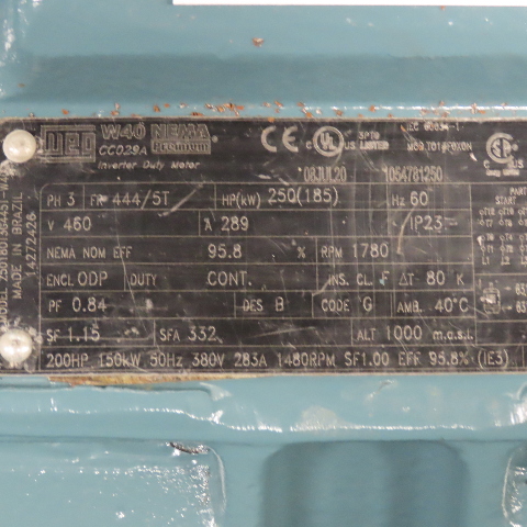 WEG 250180T3G445T 250Hp 1780RPM 460V 3Ph Inverter Duty AC Motor