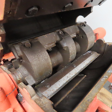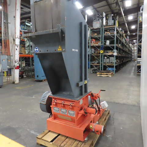 - Large vertical feed hopper and side discharge port