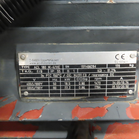 - Motor ratings: 460V, 60Hz, 35.53A, 1764 RPM