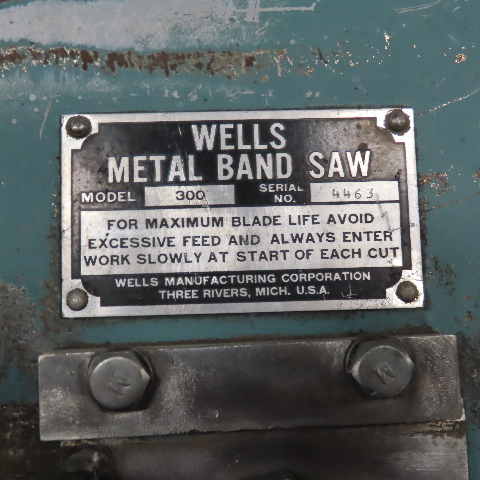 Wells Model 300 3-1/2" x 6" Capacity Metal Cutting Band Saw 115/208-230V 1/2Hp