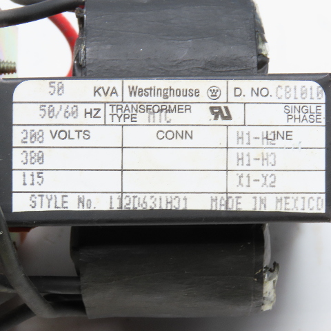 Westinghouse 112D631H31 Control Transformer .05kVA 208/380V 115V 1Ph