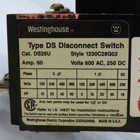 Westinghouse 1230C28G02 DS26U 60A 3-Pole Fusible Safety Disconnect Switch 600VAC