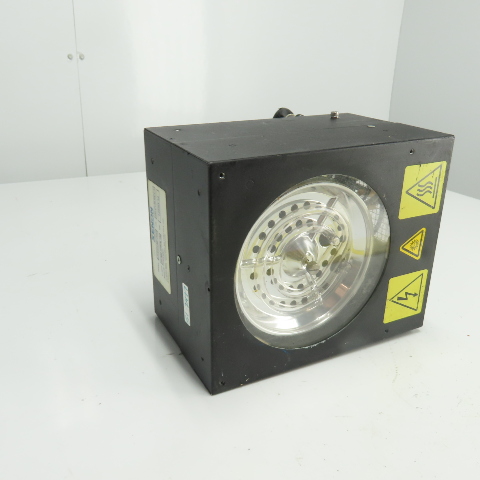 - Warning labels for high temperature, UV light, and electrical hazard present