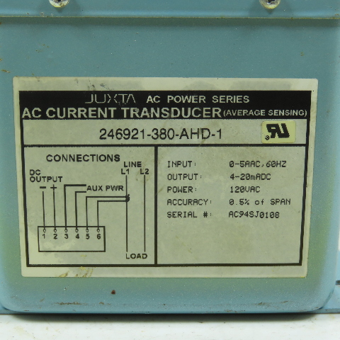 Yokogawa 246921-380-AHD-1 Juxta AC Power Current Transducer 0-5VAC In 4-20mA Out