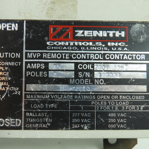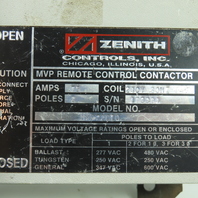 Zenith MVP72CI0 75A 2-Pole Remote Control Contactor 600VAC